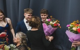 Szczególnym momentem wieczoru były podziękowania od uczniów , którzy wręczyli nauczycielom i dyrekcji kwiaty jako wyraz wdzięczności za lata wsparcia, nauki i wychowania .
